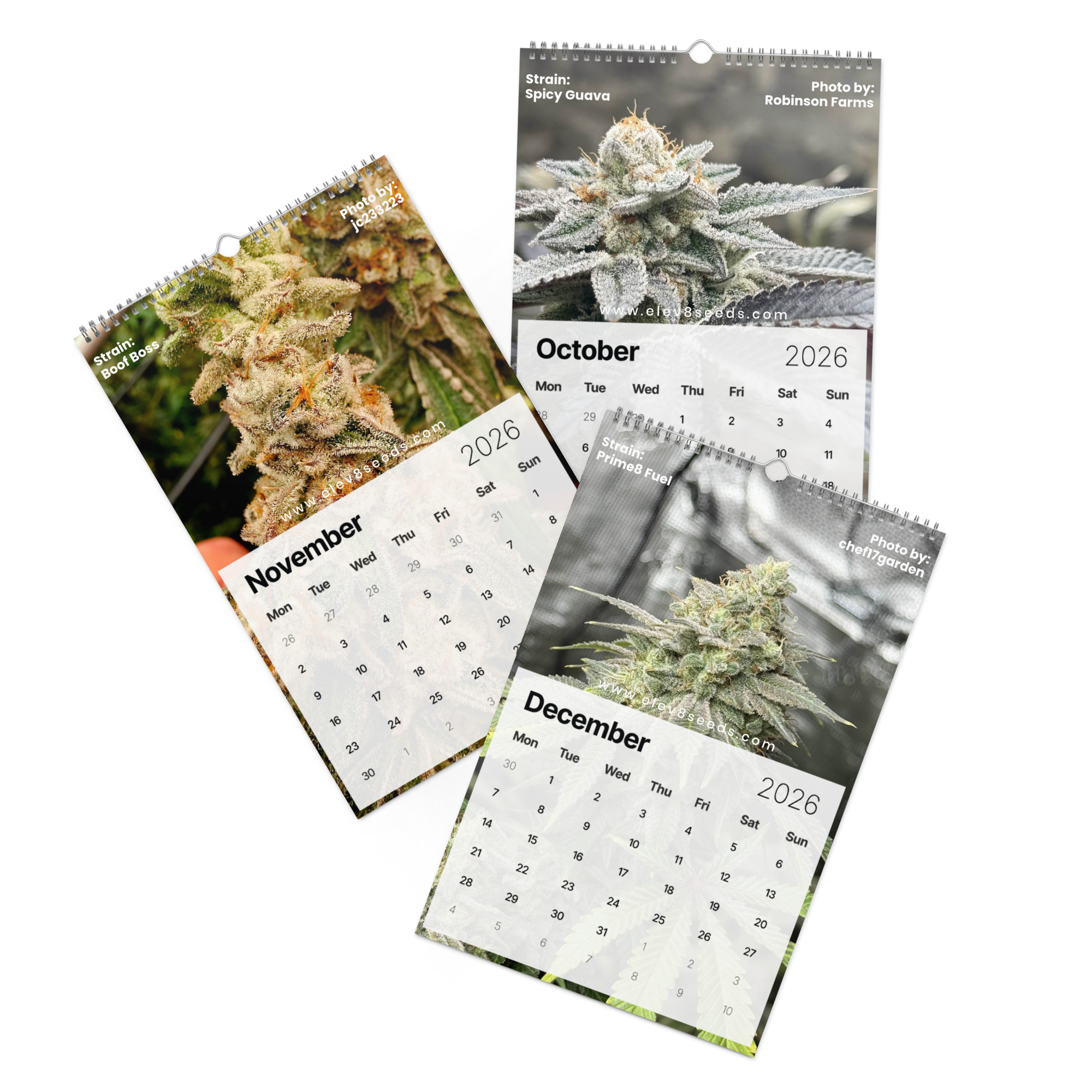 This limited-edition calendar features a curated selection of standout images from our Discord growers — real plants, real phenos, real Elev8 genetics in action. Each month highlights the passion, skill, and creativity of the growers who make this community what it is.